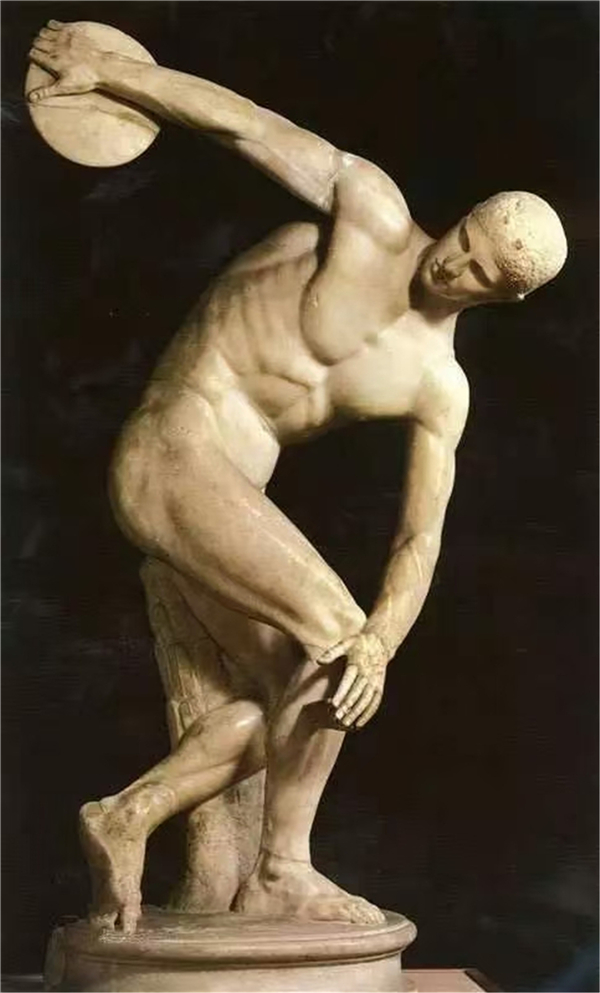 這件擲鐵餅者銅雕塑對人體結構的雕刻真實細致入微,表現人體的健壯和青春活力,十分生動,猶如真實的人體。運動員之所以呈現出裸體的形態(tài),是由古希臘人的社會風俗所決定的。因為,古希臘人在從事體育運動和宗教性的文藝演出活動時,男子往往赤身裸體。他們認為健康的人體乃是人的驕傲,是神性的體現。