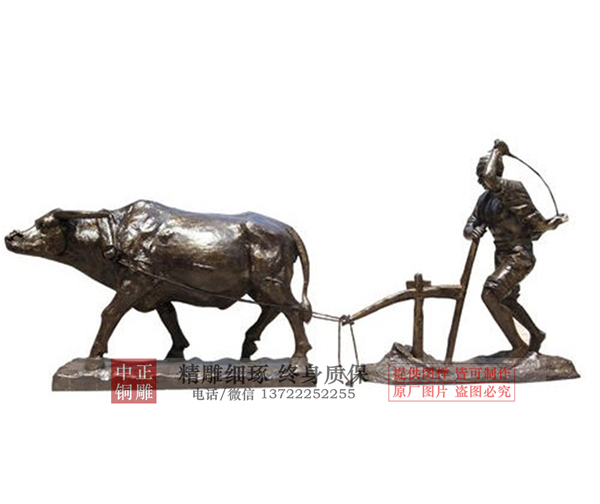 農(nóng)耕文化是我國(guó)勞動(dòng)人民幾千年生產(chǎn)生活智慧的結(jié)晶,雖然現(xiàn)在農(nóng)業(yè)基本上實(shí)現(xiàn)了機(jī)械化,但也有不少偏遠(yuǎn)地區(qū)仍是使用人力,牛耕地景觀小品雕塑就為我們講述了傳統(tǒng)耕種的過程。