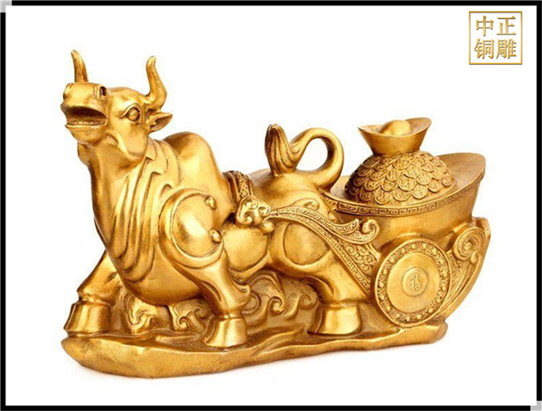 從古至今人們對于牛都是滿懷深情,牛有牛獨有的氣質,牛也表現了古代社會的男耕女織的生活面貌,人們對牛寄托了豐收的希望;沉鐵牛于河堰的習俗,體現了牛鎮水妖、保平安的避邪功能,正因牛的寓意很好,中國人對于風水有非常的重視,所以非常多的人都喜歡在家中擺放銅牛雕塑擺件,銅牛擺件也是很講究的,但是有些人是跟風的去做,自己并不了解,下面我們來了解小銅牛擺件的含義吧!