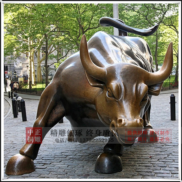 華爾街銅牛是非常有名的銅牛雕塑,我公司提供大華爾街牛的訂做,我們制做各種規格型號的華爾街銅牛作品。華爾街牛無論是做為廣場雕塑,還是做為園林雕塑,或者商業街雕塑、都是很適合的。您可以根據環境確定您要制做的華爾街牛的大小。
