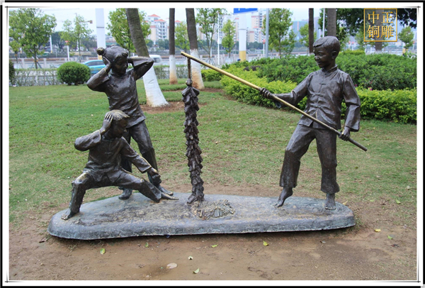銅雕廠家發現習俗性的現象雕塑多以人物記事、社會場景為主,具有鮮明的人性化和人情味。它的表現手法多以風格性為主,在城市街頭設置一些具有習俗性的現象雕塑,不只體現了地方的傳統韻味,還吸引著交游的人們寄托無限的情思。