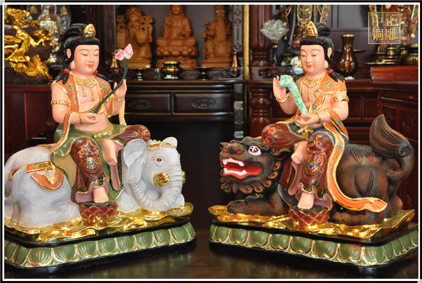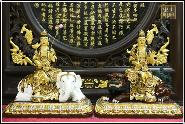 普賢菩薩,也叫遍吉菩薩。大家都很熟悉,是我們中國(guó)四大菩薩之一,有“一切如來(lái)長(zhǎng)子”之稱。我們經(jīng)常聽(tīng)說(shuō)的華嚴(yán)三圣:文殊、普賢、毗盧遮那佛,其中就有普賢菩薩,文殊菩薩代表解門(mén),普賢菩薩代表行門(mén),今天就來(lái)說(shuō)一說(shuō)文殊普賢銅佛像中普賢菩薩的功德都有哪些。