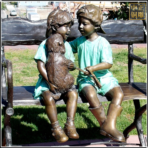 兩個小孩抱小狗人物銅雕塑、兩個小孩抱小狗人物銅雕塑價格、兩個小孩抱小狗人物銅雕塑廠家
