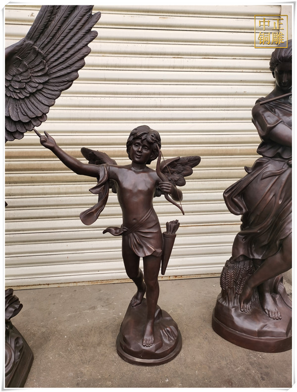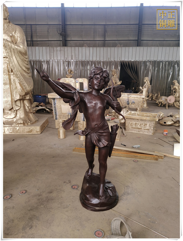 在中西方雕塑思維模式發(fā)展過(guò)程中,西方的雕塑文化形成了重視邏輯思維推理的模式,它結(jié)合了古希臘的科學(xué)主義和理想主義,為雕塑藝術(shù)的典范起到重要的基礎(chǔ),中國(guó)的雕塑文化則形成了強(qiáng)調(diào)直觀意向的思維方式,它通過(guò)直覺(jué)來(lái)直接體驗(yàn)、感悟并把握對(duì)象,這種思維方式超越了邏輯、概念而更長(zhǎng)與悟性。中正銅雕-天使丘比特銅雕塑價(jià)格,天使丘比特銅雕塑圖片,天使丘比特銅雕塑批發(fā),中正銅雕廠制作的天使丘比特銅雕塑高1.5米,我廠主營(yíng)各種銅雕塑制作,包含人物雕塑、動(dòng)物雕塑、銅佛像、銅鐘等等,制作工藝精湛、做工精細(xì),質(zhì)優(yōu)價(jià)廉,是你選擇訂購(gòu)銅雕廠家不錯(cuò)的選擇。