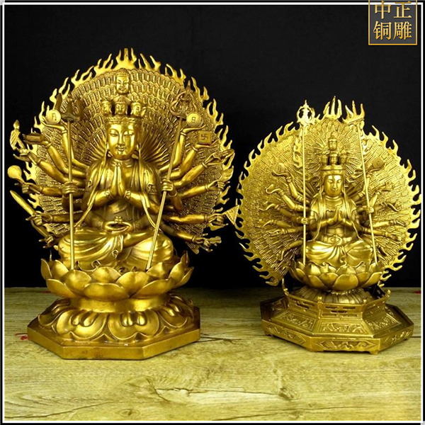 觀音的化身有很多,而千手觀音就是其中之一,而且還受到人們的虔誠供奉,但不知道大家是否了解千手觀音的來歷呢,“千”為無量及圓滿之義,以“千手”表示大慈悲的無量廣大,以“千眼”代表智慧的圓滿無礙。千手千眼觀世音能利益安樂一切眾生,隨眾生之機。中正銅雕-純銅千手觀音像、純銅千手觀音像價格、純銅千手觀音像廠家,我司是一家資質(zhì)齊全、設備完整、實力雄厚的私營企業(yè),集科研、開發(fā)設計、普通鑄造、一次性整體澆鑄、精密鑄造于一體。主要鑄造大型現(xiàn)代人物銅雕,抽象人物銅雕,抽象人物銅雕,歷史人物銅雕,動物銅雕,園林景觀銅雕等。