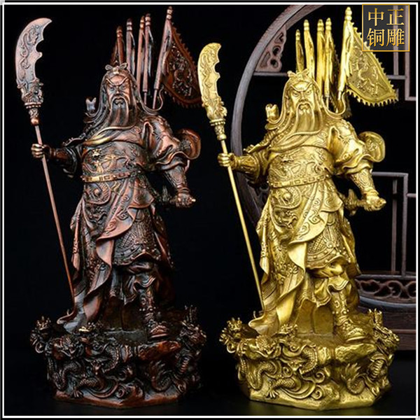 如今的關公像有兩種,一種刀尖向上,另一種是刀尖向下。刀尖向上的含義表示關公的忠義之心,向下表示的含義就是進財,這兩種一定要分清楚。在擺放關公像時,還有一個忌諱,因為關公是一個猛將,殺過的人很多,殺氣重,所以不能放置在有孕婦的房間里面,以免不吉利。中正銅雕-九龍關公銅雕像、九龍關公銅雕像價格、九龍關公銅雕像廠家,我廠是一家以設計、制作、安裝為一體的發展型企業。公司坐落在中國銅雕之鄉---河北唐縣,成立于1984年。公司自成立以來,以優質的雕塑工藝,優異的性價比,一體化的銷售網絡,高效、完善的售后服務,飛速發展。成為了擁有設計、銷售、生產、安裝、維護為一體的銅雕塑制作商。