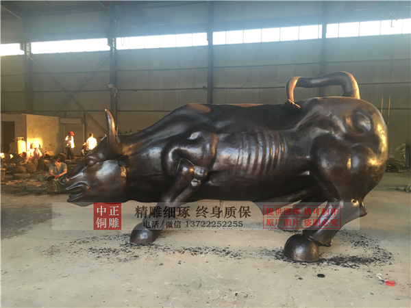 牛給人的印象,是一種溫順而踏實(shí)的動物,肯吃苦、憨厚樸實(shí),是人類的好幫手,而銅牛雕塑的多樣造型,具有著力量與旺財?shù)南笳饕饬x,尤其在現(xiàn)代化的今天,銅牛雕塑更被賦予了開拓創(chuàng)新、積極進(jìn)取、團(tuán)結(jié)奉獻(xiàn)的精神意義,所以說,銅牛雕塑不僅僅是一種雕塑產(chǎn)品,更是一種精神的象征,能夠給人以思想上的激勵,在企業(yè)當(dāng)中尤為適用。中正銅雕-華爾街銅牛雕塑廠家,定做華爾街銅牛雕塑廠家,大型華爾街銅牛雕塑廠家,唐縣中正銅雕工藝品廠是鑄銅雕塑的廠家。擁有設(shè)計(jì)師和雕塑團(tuán)隊(duì),引進(jìn)的鑄造技術(shù),開發(fā)出一系列的藝術(shù)性銅制工藝品。