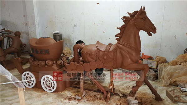 縱觀中國(guó)古代的雕塑馬,在不同的朝代,雕塑馬的造型也不盡相同。然而,就算處在同一個(gè)朝代,不同的雕塑家所塑造的馬也不一樣,論其原因,就在于每個(gè)人腦海中對(duì)于馬的意象造型都是不一樣的。人具有主觀能動(dòng)性,在這個(gè)主觀能動(dòng)的支配下,意識(shí)對(duì)馬這個(gè)客體的反應(yīng)也是不同的,譬如,有的雕塑家手下的馬是仰天長(zhǎng)嘯的瀟灑,而有的則是體型嬌小,馴服聽命。中正銅雕-定制銅馬雕塑廠,定制銅馬雕塑廠家,定制大型銅馬雕塑廠,我公司實(shí)行現(xiàn)代化企業(yè)管理,成功導(dǎo)入TPS生產(chǎn)管理系統(tǒng),形成集塑制泥塑模型、泥稿后翻制模具、翻制石膏模型、工藝師加工制作、營(yíng)銷為一體化作業(yè)的生產(chǎn)線,加上先進(jìn)的銅雕加工設(shè)備,優(yōu)秀的美術(shù)設(shè)計(jì)師,雕刻經(jīng)驗(yàn)豐富的制作人員, 造型精美,精雕細(xì)琢,深受客戶的好評(píng)。