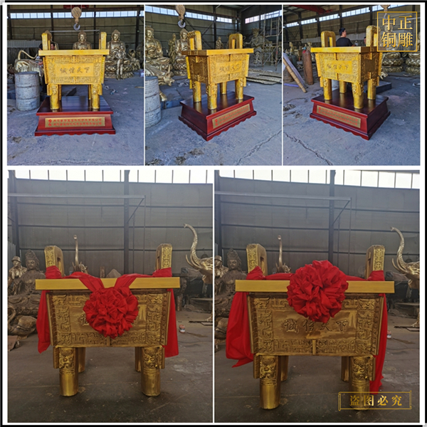 中正銅雕-鑄造1.5米銅鼎、鑄造1.5米銅鼎價(jià)格、鑄造1.5米銅鼎廠家,我公司集科研、開(kāi)發(fā)設(shè)計(jì)、普通鑄造、一次性整體澆鑄、精密鑄造于一體。本公司技術(shù)力量雄厚,設(shè)備,不但重視中國(guó)青銅器原有的藝術(shù)風(fēng)格,還繼承了文物原有的藝術(shù)品味,在繼承和發(fā)揚(yáng)古老文化的同時(shí),更深一步為新老客戶(hù)定身量制各種銅制、鐵制工藝品等產(chǎn)品,曾多次受到寺廟長(zhǎng)老和美術(shù)學(xué)院教授的好評(píng)。